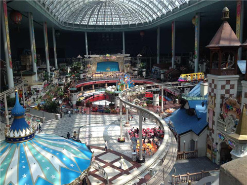 接下來便是大伙期待已久的樂天世界樂園。樂天世界樂園分室內(nèi)和室外,室外的“魔幻島”是屬比較刺激的游樂設(shè)施,如100公尺高的高空降落、高空秋千、海盜船、亞特蘭蒂斯大冒險等。室內(nèi)的“探險世界”有旋轉(zhuǎn)木馬、世界單軌車、日內(nèi)瓦游覽船、各國風(fēng)情的街道、各國料理餐廳、紀念品店,還可欣賞精彩的巡游Show、吉祥物Show及激光Show。同事們根據(jù)個人喜好,盡情游玩。