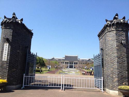 第五天,我們前去了土產(chǎn)雜貨店,選購韓國著名泡菜等當?shù)孛a(chǎn)饋贈親友。隨后到達光州國立博物館。為了振興發(fā)展韓國文化藝術(shù)和提高國民素質(zhì),韓國政府于1977年開始建造國立光州博物館,1978年12月6日正式開館。按照韓國傳統(tǒng)樣式建立的國立光州博物館規(guī)模為地上2層、地下4層,面積達3305平方米,包括展覽室、文物保管設(shè)施和室外展覽場等設(shè)施。