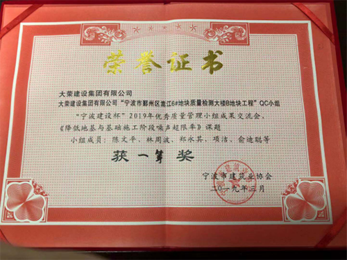 經(jīng)過專家前期評(píng)審,選出其中較有代表性的43個(gè)課題作為發(fā)表課題,其余47個(gè)為交流課題。其中,我公司共有三個(gè)課題參加,一個(gè)發(fā)表,兩個(gè)交流。經(jīng)過層層選拔,公司“寧波市鄞州區(qū)嵩江6#地塊質(zhì)量檢測(cè)大樓B地塊”QC小組發(fā)表的《降低地基與基礎(chǔ)施工階段噪聲超限率》課題榮獲發(fā)表會(huì)QC成果一等獎(jiǎng);“鄞州區(qū)長(zhǎng)豐幼兒園工程”QC小組的《提高構(gòu)造柱施工一次合格率》課題榮獲優(yōu)秀獎(jiǎng);“鄞州區(qū)長(zhǎng)豐鄰里中心工程”QC小組的《提高現(xiàn)澆混凝土柱根部施工一次合格率》課題榮獲優(yōu)秀獎(jiǎng)。