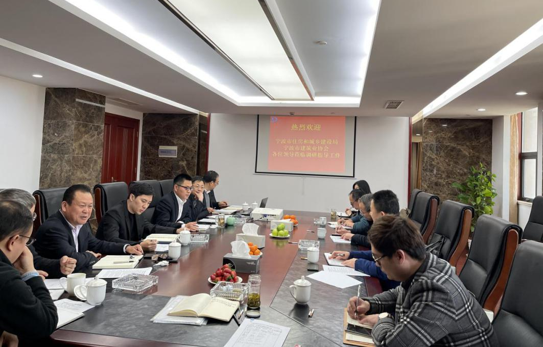 2021年3月23日,寧波市住建局市場處王大成副處長一行五人蒞臨公司調(diào)研建筑行業(yè)經(jīng)濟(jì)運(yùn)行情況工作,與公司總經(jīng)理徐曉磊、各部門副總座談,了解企業(yè)經(jīng)營現(xiàn)狀與發(fā)展思路,面臨的重點(diǎn)問題與困難,并聽取企業(yè)建議。會(huì)談氣氛熱烈,交流積極,并就建筑行業(yè)發(fā)展所遇到的普遍性問題進(jìn)行探討。
