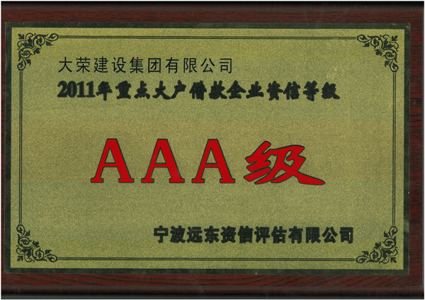 熱烈祝賀大榮建設(shè)集團(tuán)有限公司成為2011年重點(diǎn)大戶借款企業(yè)資信AAA級(jí)