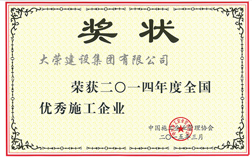 近日,從中國施工企業(yè)管理協(xié)會傳來喜訊,大榮建設(shè)集團有限公司榮獲“2014年度全國優(yōu)秀施工企業(yè)”。全國優(yōu)秀施工企業(yè)是由中國施工企業(yè)管理協(xié)會組織的全國性評優(yōu)活動,對參評單位的工程質(zhì)量管理、推動企業(yè)改革、建立現(xiàn)代企業(yè)制度等多方面進行綜合評估。
