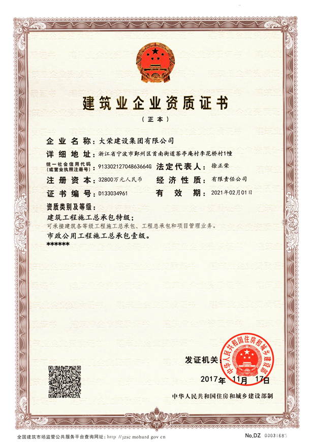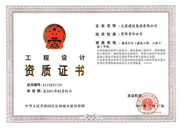 建筑行業(yè)(建筑工程、人防工程)甲級(jí)資質(zhì)證書